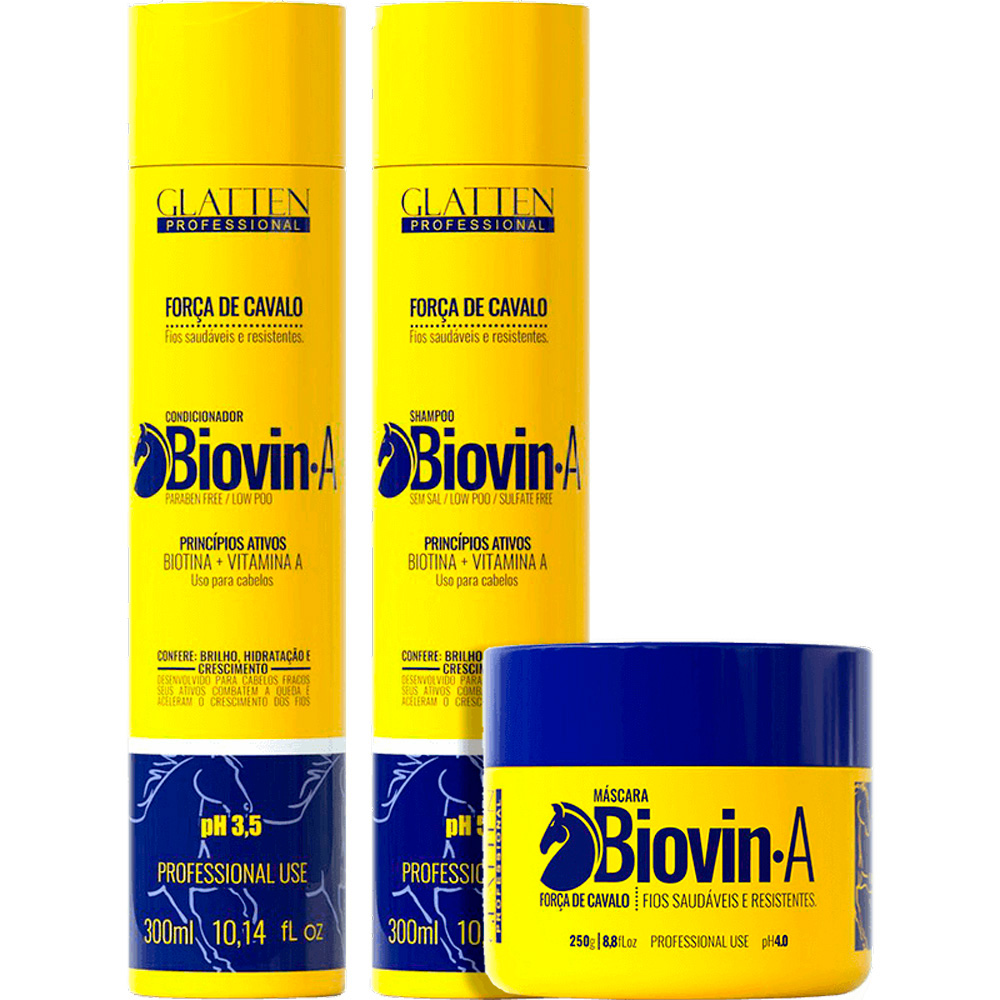Glatten Biovin A – Kit de Crescimento Biotina + Vitamina A Trio (3 Produtos)