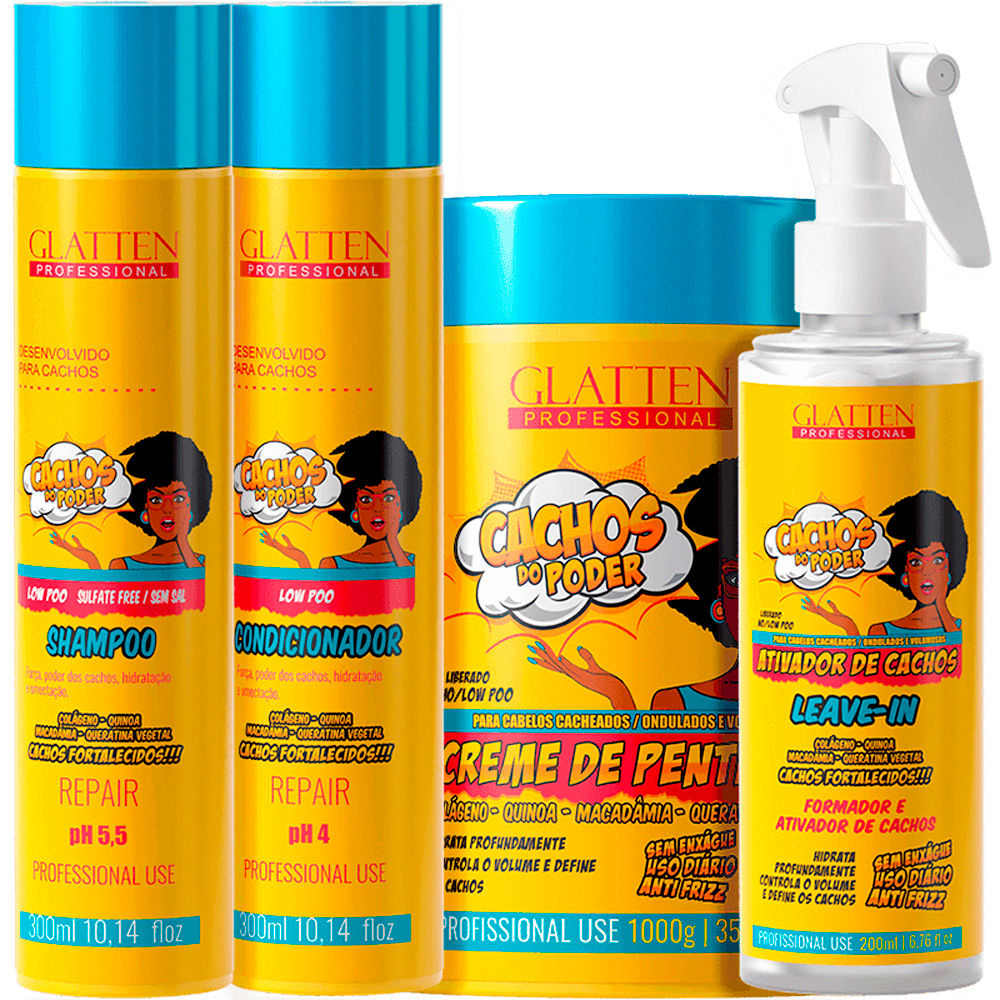 Glatten Cachos do Poder – Kit Repair Uso Diário Completo (4 Produtos)
