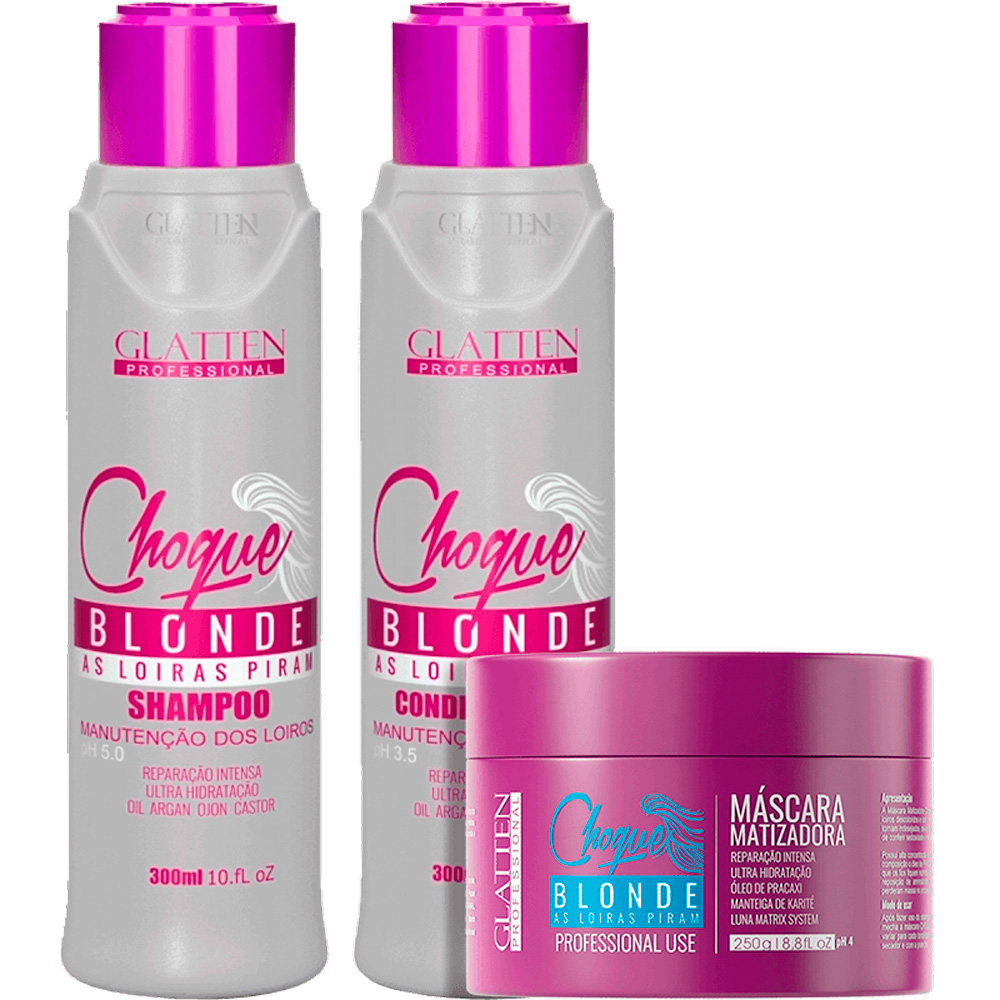 Glatten Choque Blonde – Kit Desamarelador Matizante Efeito Branco Acizentado (3 Produtos)