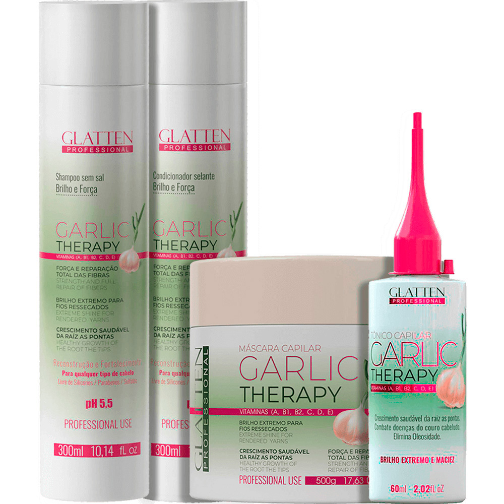 Glatten Garlic Therapy – Kit Óleo de Alho Força e Reparação Completo (4 Produtos)