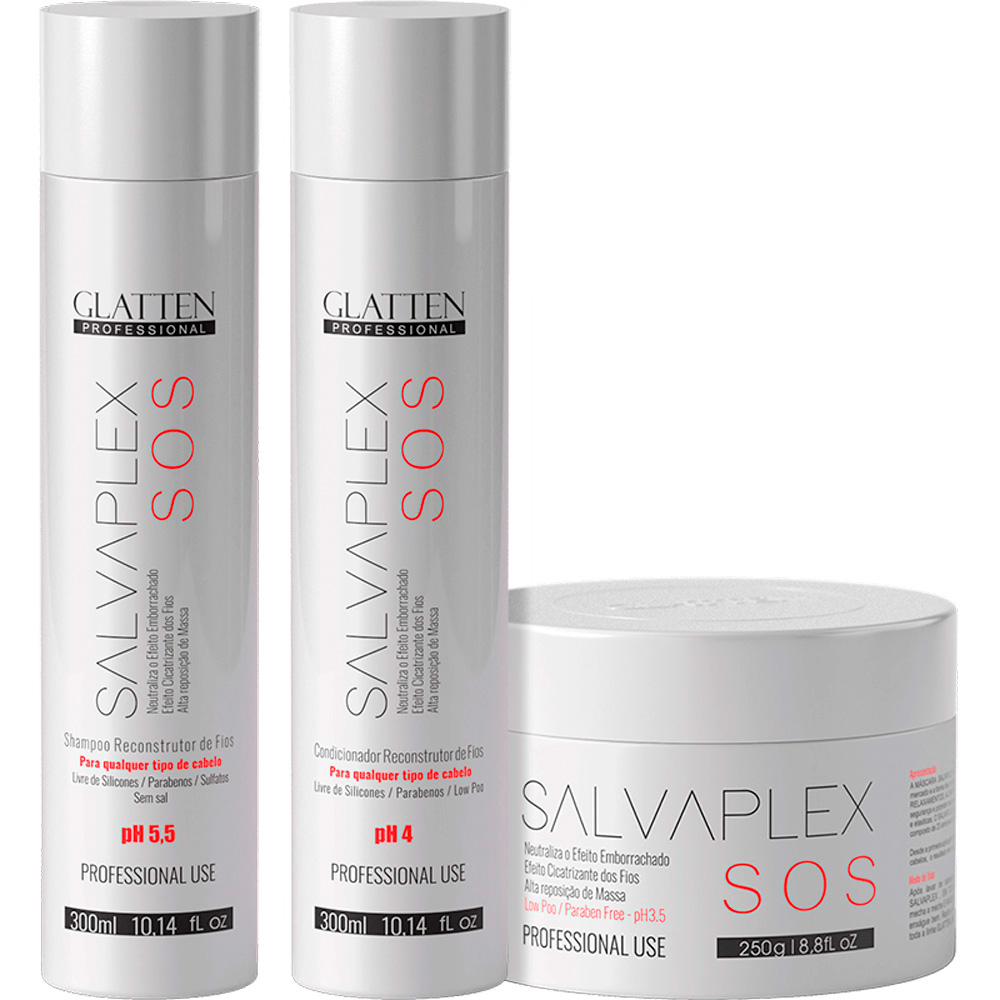 Glatten Salvaplex – Kit SOS Reconstrutor de Fios Trio (3 Produtos)