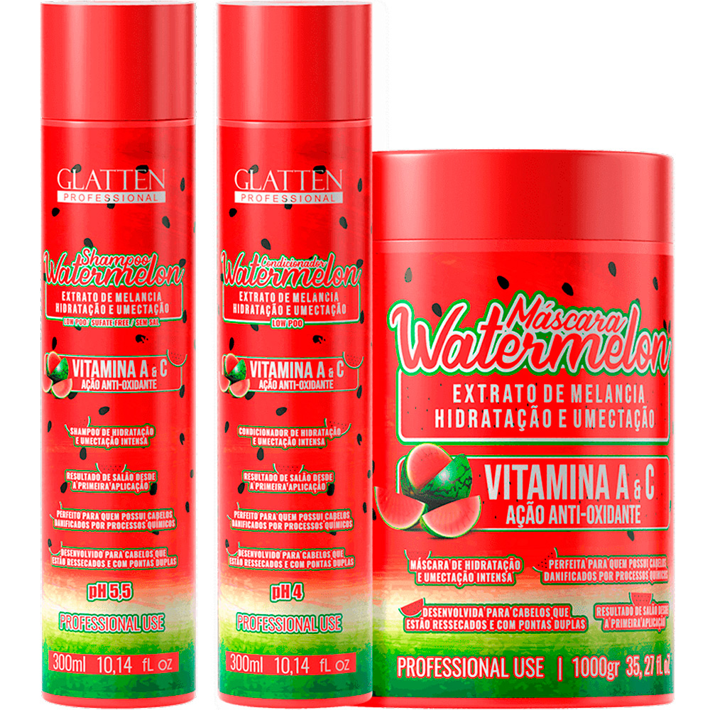 Glatten Watermelon – Kit Extrato de Melancia Hidratação e Umectação Trio (3 Produtos)