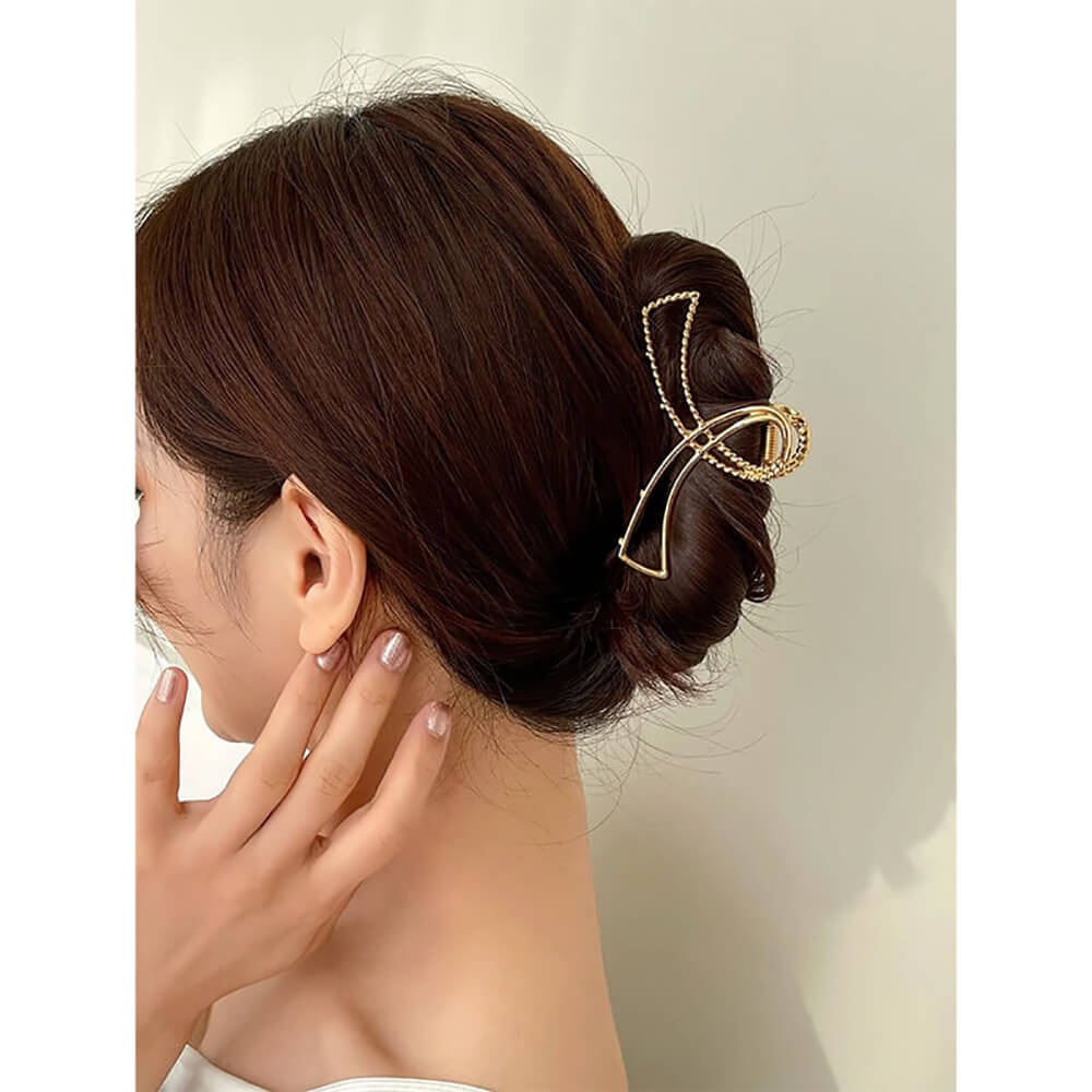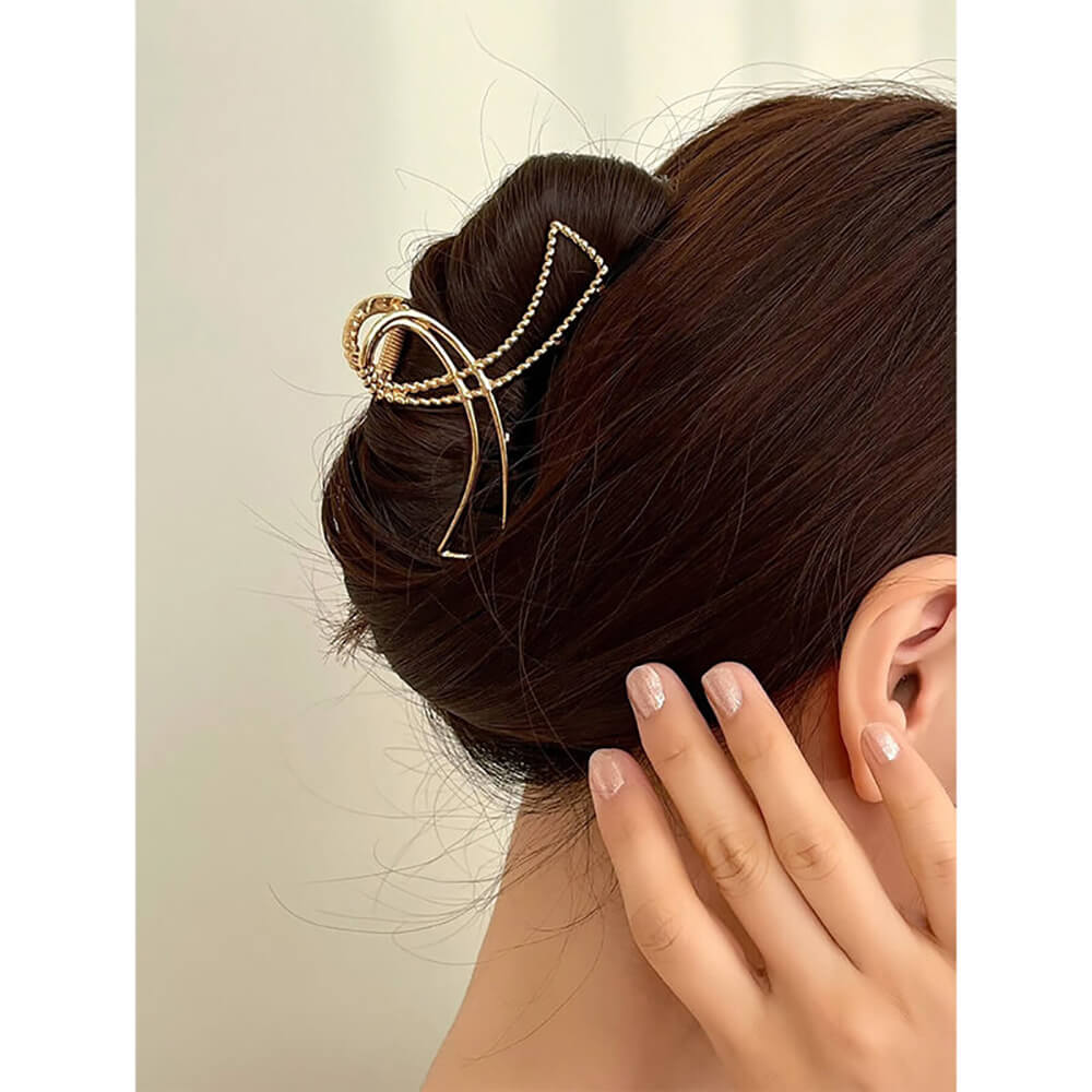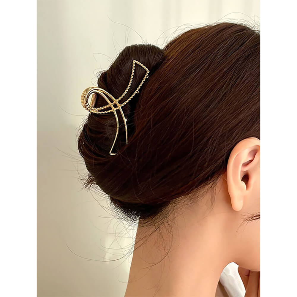 Nobrand – Presilha Piranha de Cabelo Metal Laço Estilizado Dourada