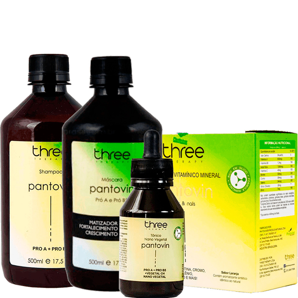 Three Therapy Pantovin – Kit de Crescimento Very Black Completo (4 Produtos)